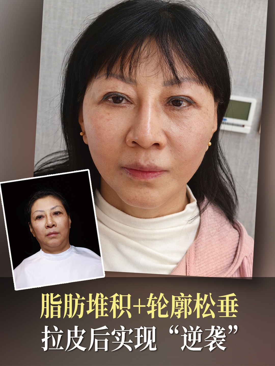 面部组织厚重,脂肪堆积,皮肤下垂,拉皮后实现“逆袭”